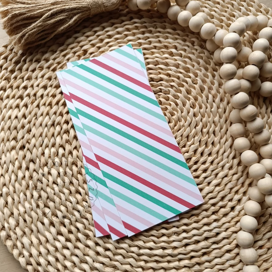 Karácsonyi keskeny csíkos, 5 színű "könyvjelző" sütihátlap (3db)