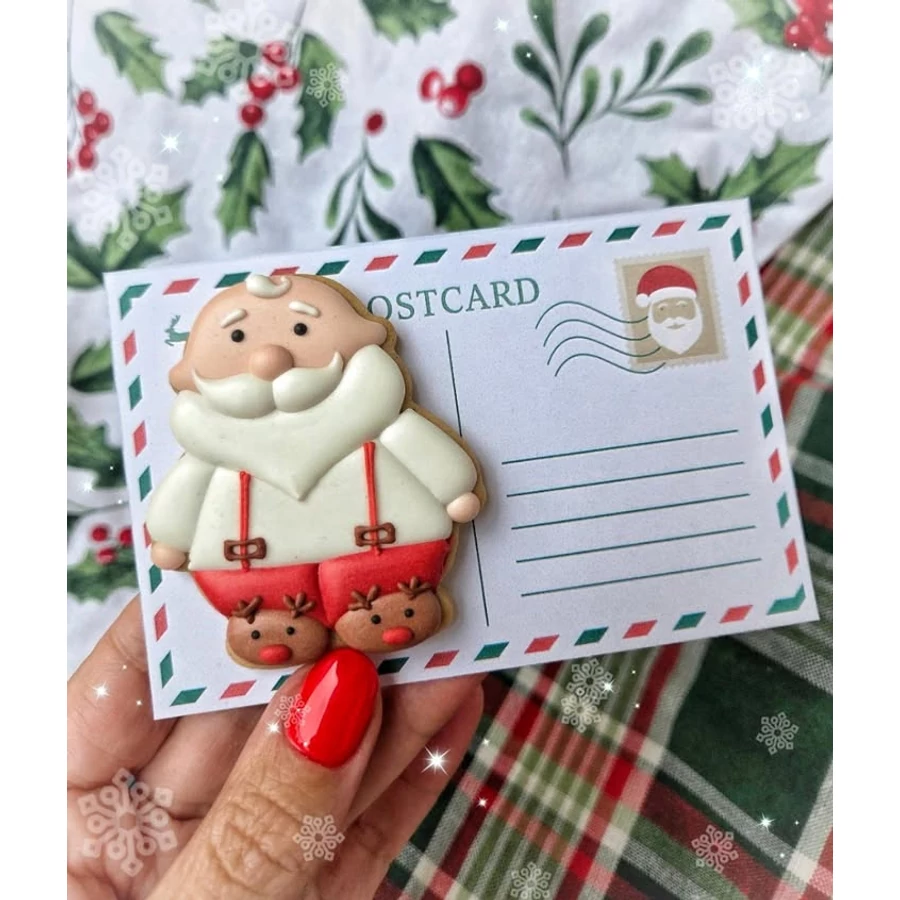 Mikulás pizsiben körvonal sütikiszúró. Bedő Babett 2023-as karácsonyi mézeskalács kínálata készült vele.