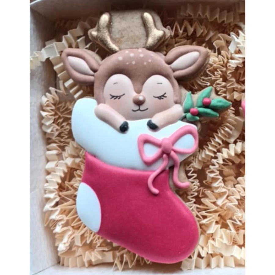 Rénszarvas zokniban körvonal sütikiszúró. Mesi Mézi Design mézeskalács kínálata készült vele.